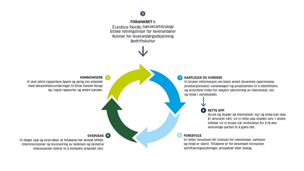 Eurobus Nordic AS har kartlagt leverandør kjeden for disse fire områdene. Vi har kartlagt leverandørene og foretatt risikovurdering på disse.